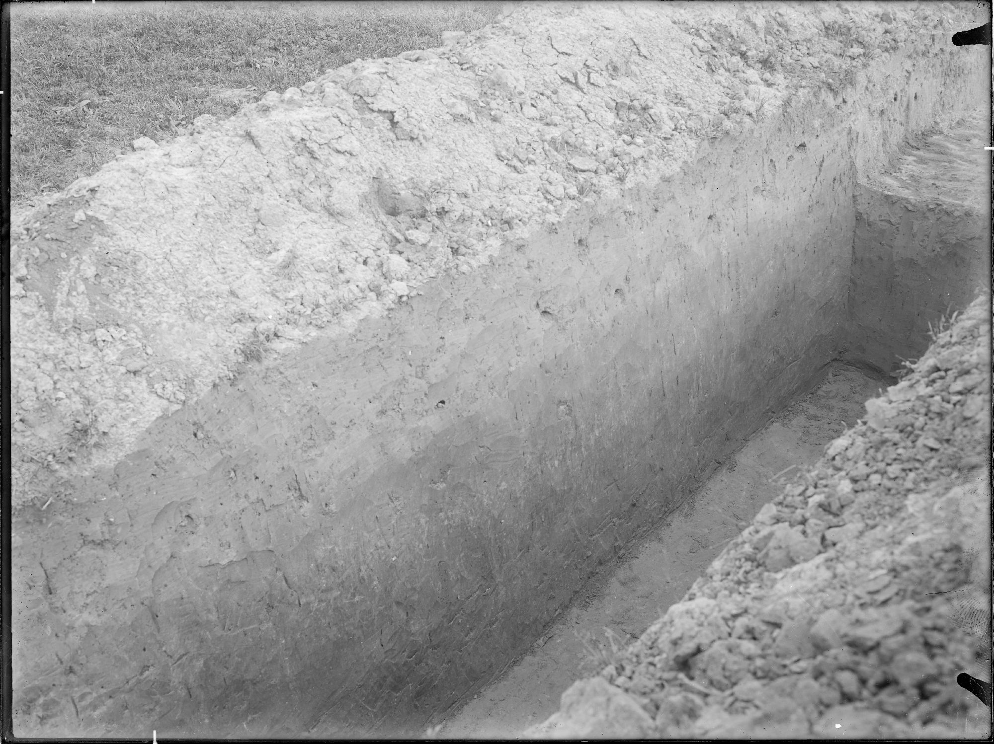 De gracht van de bandceramische vesting, coupe door de gracht ten N van de (Rom.) veldweg dicht bij de grote weg naar