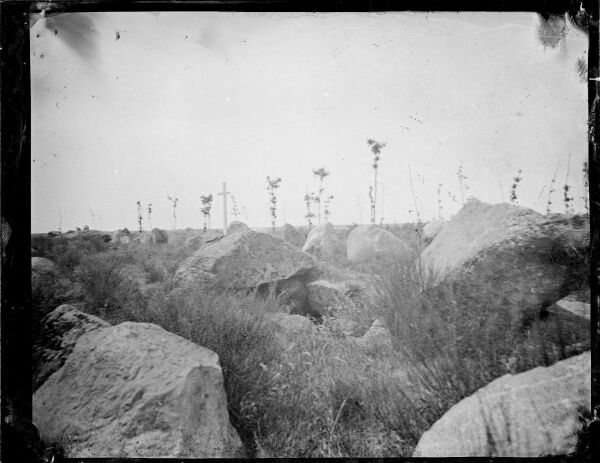 Hunebed G 1, foto J. Goedeljee, nagetekend door W. Pleyte